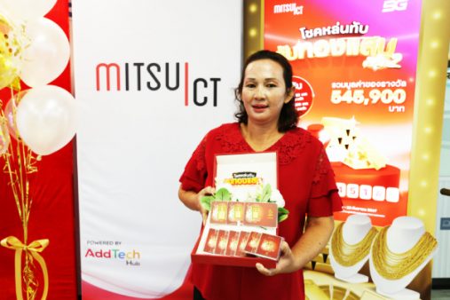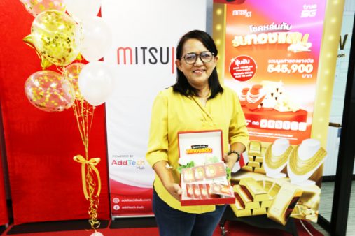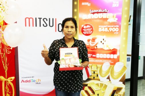 ภาพผู้โชคดีมารับ ทองคำมูลค่า 100,000 บาท จำนวน 5 รางวัล รวมมูลค่า 500,000 บาท
