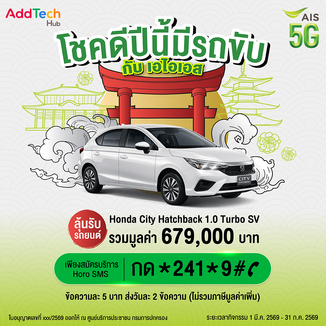 - ประกาศผล วันที่ 15 กันยายน 2569 สามารถตรวจสอบรายชื่อผู้โชคดีผ่านเว็บไซต์ https://www.addtechhub.com/social/ais-city-s1/ หรือติดตามรายละเอียดเพิ่มเติมได้ที่ facebook fanpage AIS
