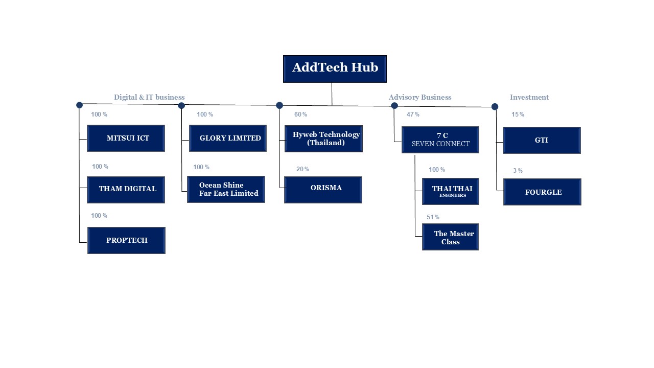 A subsidiary in which the Company holds 60% of the registered capital Currently, the registered and paid-up capital is THB 10 mm and HyWeb Technology (“HT”), one of the leading software developers in Taiwan, holds 40% of the shares. This company is operating various types of system and software development business according to the joint expertise of AddTech Hub and Hyweb.